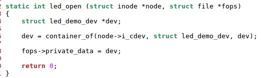 open:参数用两个,一个为inode节点,一个为file结构体。inode包含文件的基础信息以及数据块的指针。file结构体从属于进程,用来描述某个进程正使用的设备文件。open函数的的作用主要是通过结构体变量中某个成员的首地址进而获得整个结构体变量的首地址,然后使用private_data来挂载简单的字符驱动设备。使用private_data的原因是需要给设备分配自定义的数据结构,防止多个相同设备共用这些自定义数据结构,会引起冲突