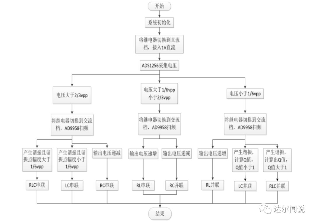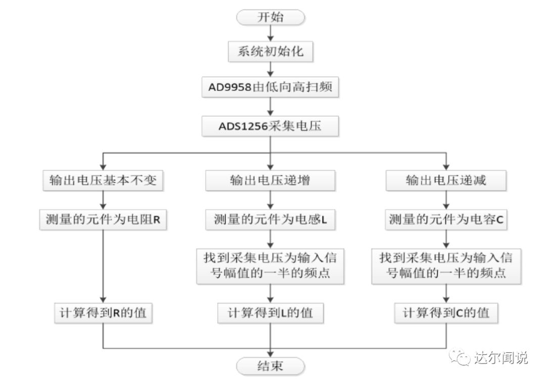 1、元件值测量分析。电阻、电容和电感三种元件在不同频率下所表现出的特性不同,电阻的阻抗几乎不受频率影响,电容的阻抗随频率的增加阻抗越来越小,电感的阻抗随频率的增加越来越大。因此可将元件串联一个基准电阻进行分压,加真有效值和高精度ADC 通过测取分压大小,以此计算元件值的大小。