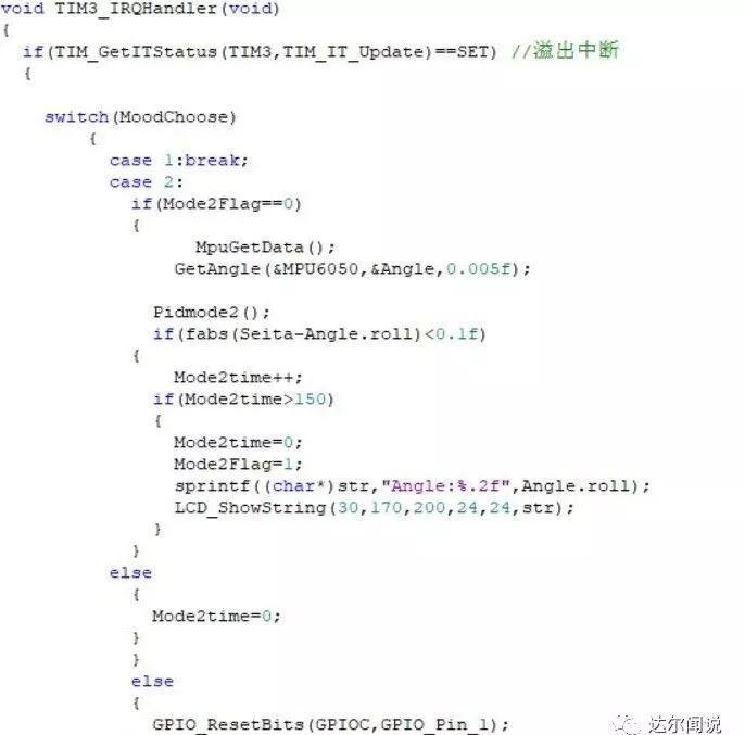 这是主函数,其实就是一些初始化,还有模式的选择,工作都在定时器中断里面做的,如下: