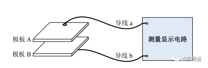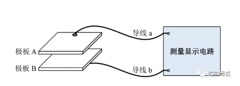 本次设计制做的纸张计数显示装置由两块平行极板(极板 A、极板B)分别通过导线 a 和导线 b 连接到测量显示电路,装置可测量并显示置于极板 A 与极板 B 之间的纸张数量。