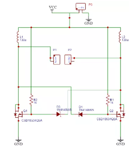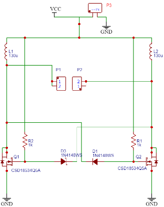 方案二:自激振荡式谐振拓扑。采用罗耶振荡电路,构成频率跟随谐振电路,经过开关电路中2个MOS管的交替导通,在电容和发射线圈两端产生交变电压信号,电压信号经过反馈回路控制MOS的导通状态,实现两者开关状态的切换,从而形成稳定的谐振状态,产生正弦交变信号,进行无线传输。