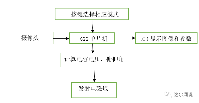本系统包括MK66FX1M0VLQ18单片机,MT9V032摄像头模块,线圈式电磁炮,升压模块,高压大容量电容,两轴舵机云台,电磁继电器模块。高速摄像头配合单片机实时采集头像,寻找引导标识,在通过激光雷达获取距离,解算发射角度与发射电压,达到最准精度,并设计了简单的人机交互界面,实时调试参数。装置整体结构简洁、系统稳定,能够实现预期任务要求。