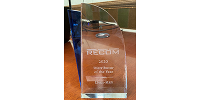 RECOM Power 授予 Digi-Key Electronics 2020 年度最佳分销商