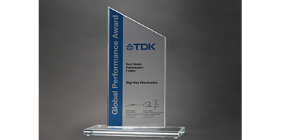 TDK 授予 Digi-Key Electronics 2021 年度全球最佳绩效奖可通过 Digi-Key 随时向全球发送 TDK 广泛的产品组合。