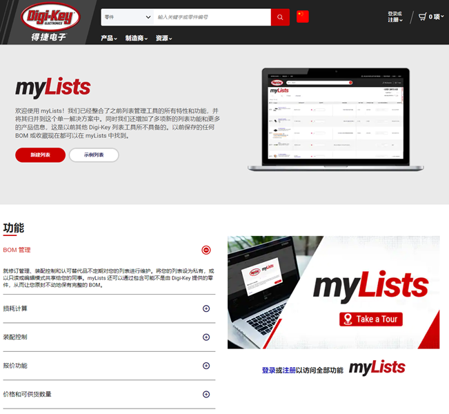 已注册的 Digi-Key 用户可通过 digikey.cn/mylists 链接访问 myLists 并创建报价。