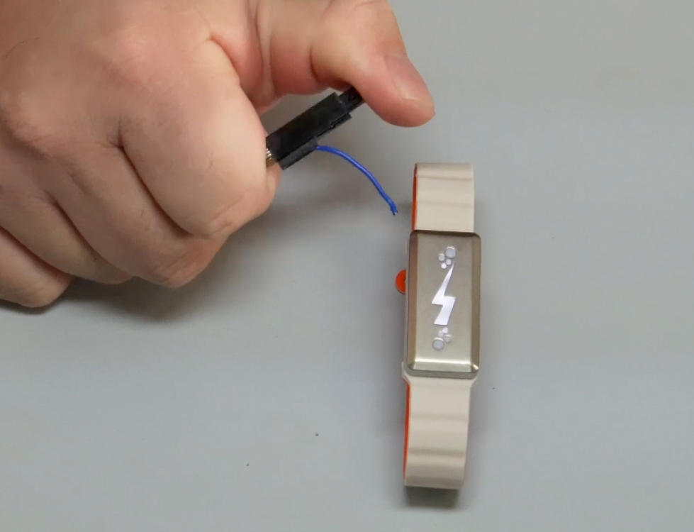我们拆开后发现,手环内部只有铁片,啥也没了,但我们测量连接线,发现有1MΩ的电阻,这就能消除静电?